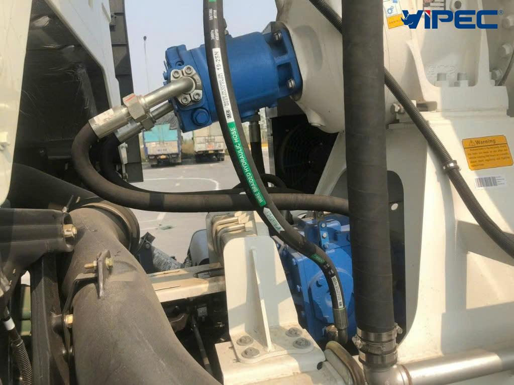 Hệ thống thủy lực dẫn động cơ cấu quay thùng trộn bê tông.