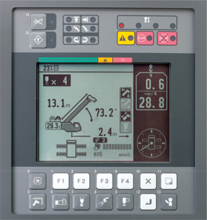 Hệ thống AML-C mới của Tadano dễ sử dụng, cho phép người vận hành giám sát đồng thời các thông số sau: góc cần, chiều dài cần, áp suất vận hành của xi lanh nâng, độ mở rộng của chân chống, vị trí quay, tải trọng nâng định mức và trọng lượng hiện tại của móc.