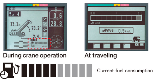 Hệ thống kiểm soát hiệu quả lượng dầu thủy lực được bơm ra trong quá trình vận hành cần cẩu, dựa trên mức độ điều khiển của cần vận hành. Ngoài ra, hệ thống còn duy trì lượng dầu bơm ra ở mức tối thiểu, giúp giảm tới 20% lượng khí thải CO₂ và tiêu thụ nhiên liệu.