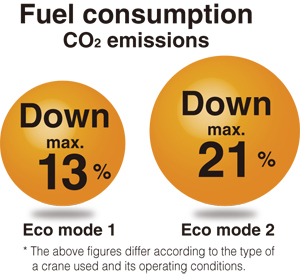Hệ thống kiểm soát tốc độ tối đa của động cơ trong quá trình vận hành cần cẩu. Ngoài ra, bằng cách hạn chế sự gia tăng tốc độ động cơ không cần thiết khi tăng ga quá mức, hệ thống giúp giảm lượng khí thải CO₂ và tiêu thụ nhiên liệu tối đa 13% khi sử dụng Eco mode 1, và tối đa 21% khi sử dụng Eco mode 2.