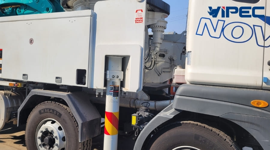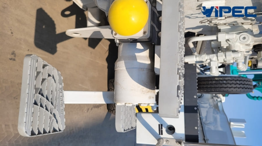 Pump pipe holder on the rear outrigger beam