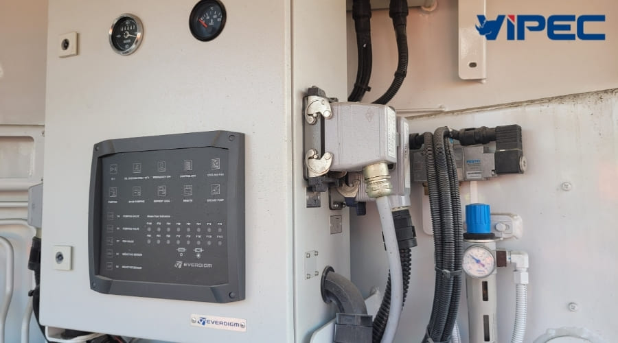 Module-type electrical control box, equipped with a display screen showing equipment operating status