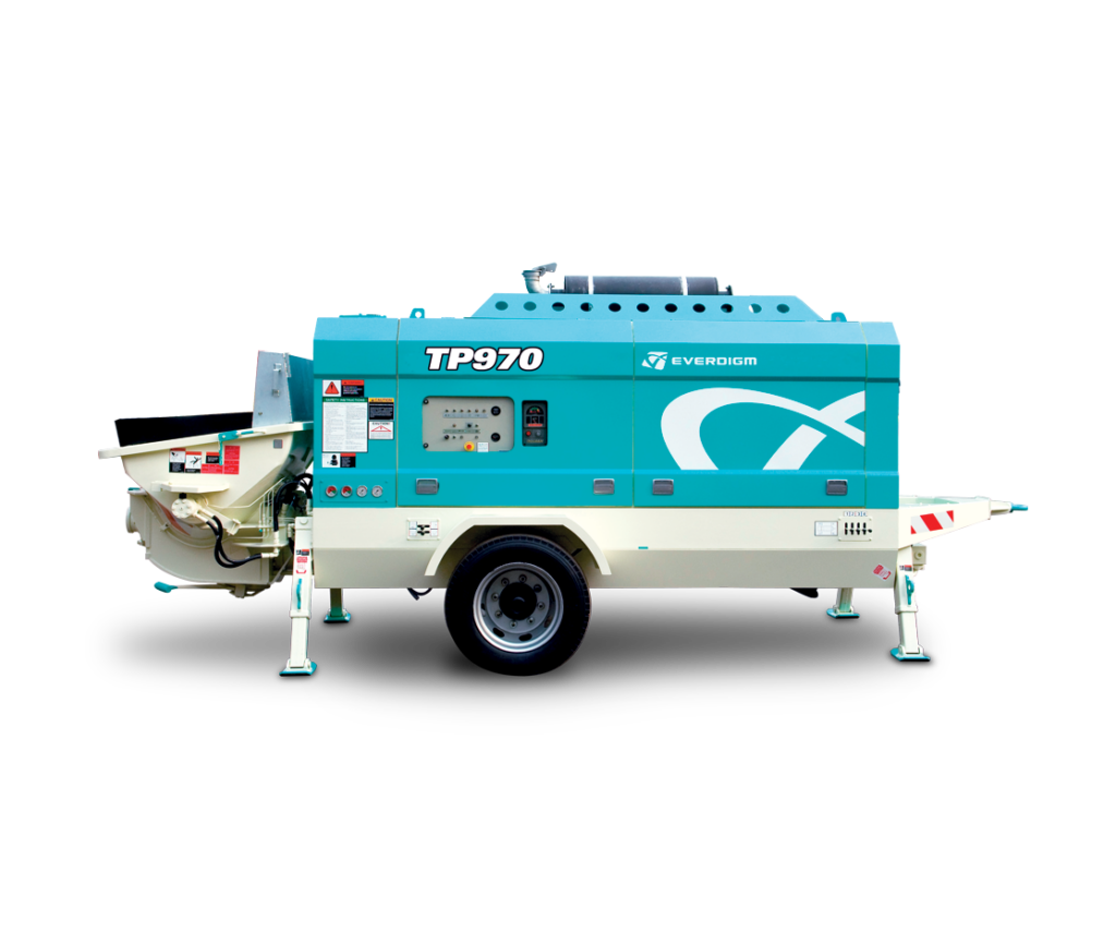 Newly designed hopper system, with 2 hydraulic motors controlling agitator blades on both sides, preventing concrete segregation and clogging